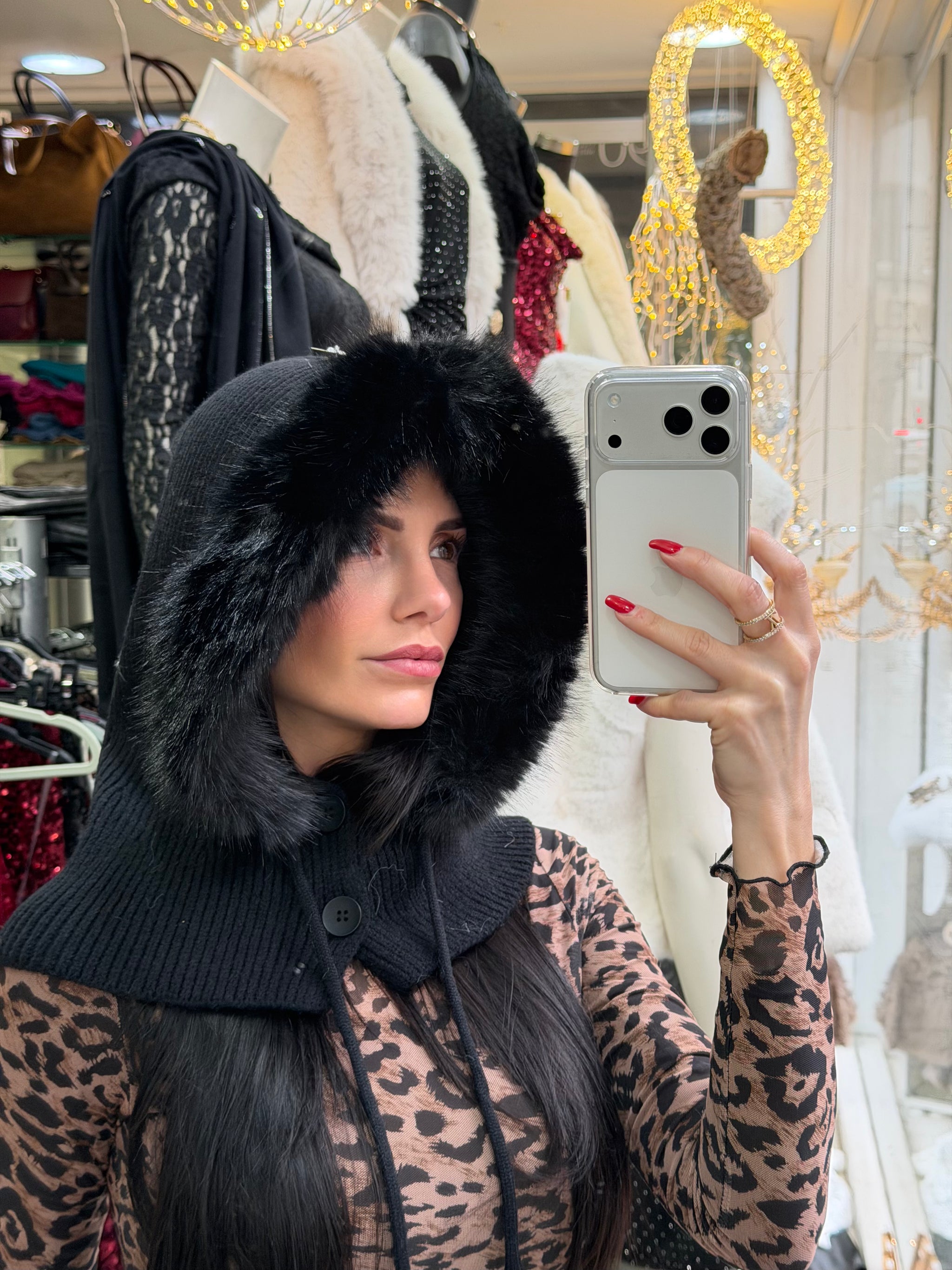 Cagoule 80% acrylique 10% laine lavage à la main taille unique fausse fourrure