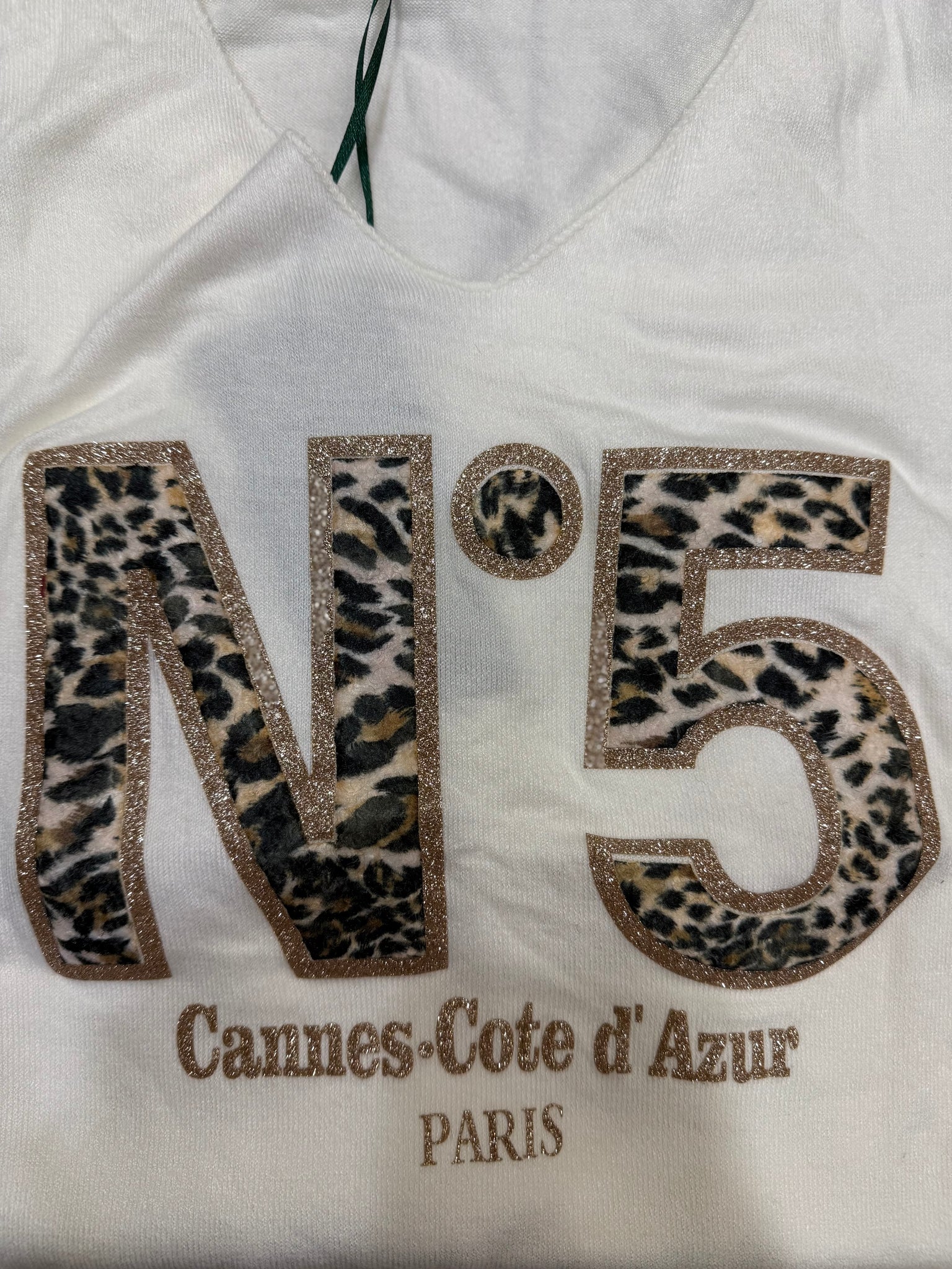 • Taille unique : convient du 34 au 42 • Col V raffiné • Inscription “Cannes Côte d’Azur – Pari...