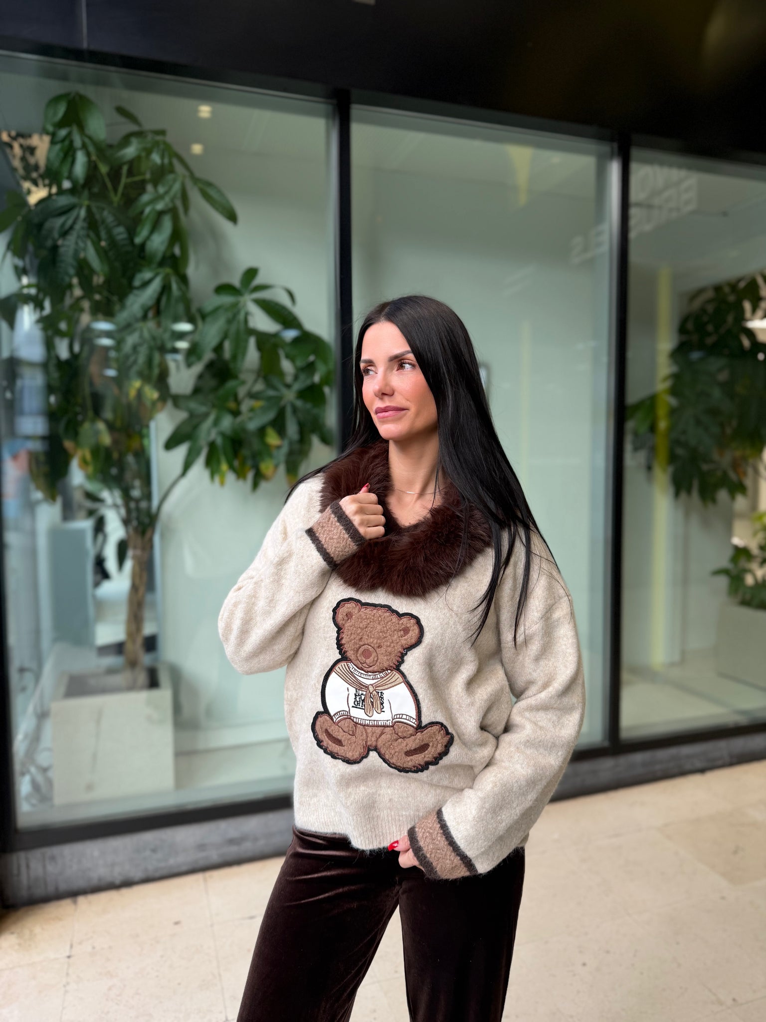 Pull – Taille unique 34-44 • Col en fausse fourrure amovible chocolat • Maille douce & conf...