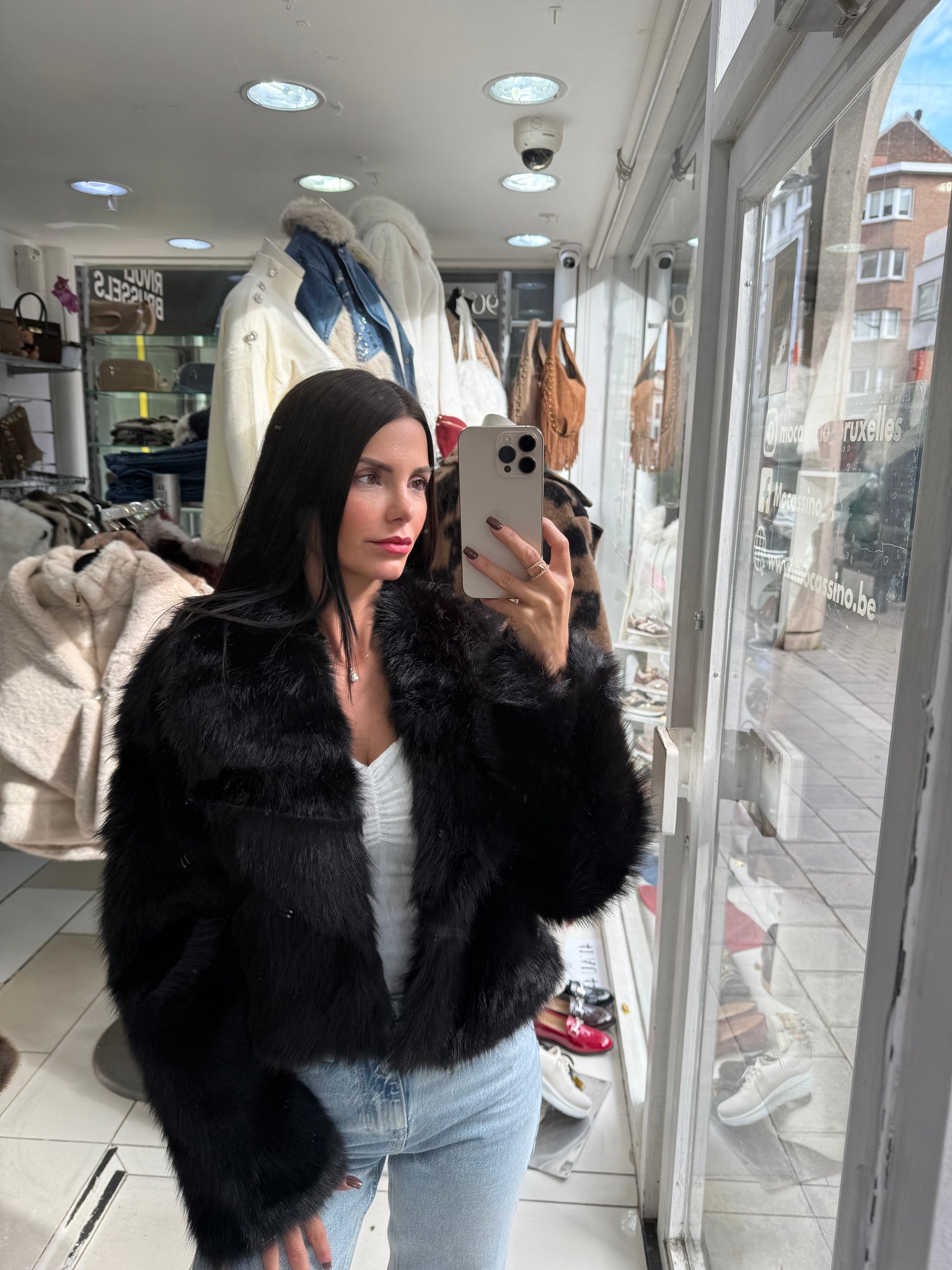 Couleur : Noir profond Taille : Unique, convient du 34 au 44 Matière : Fausse fourrure effet l...