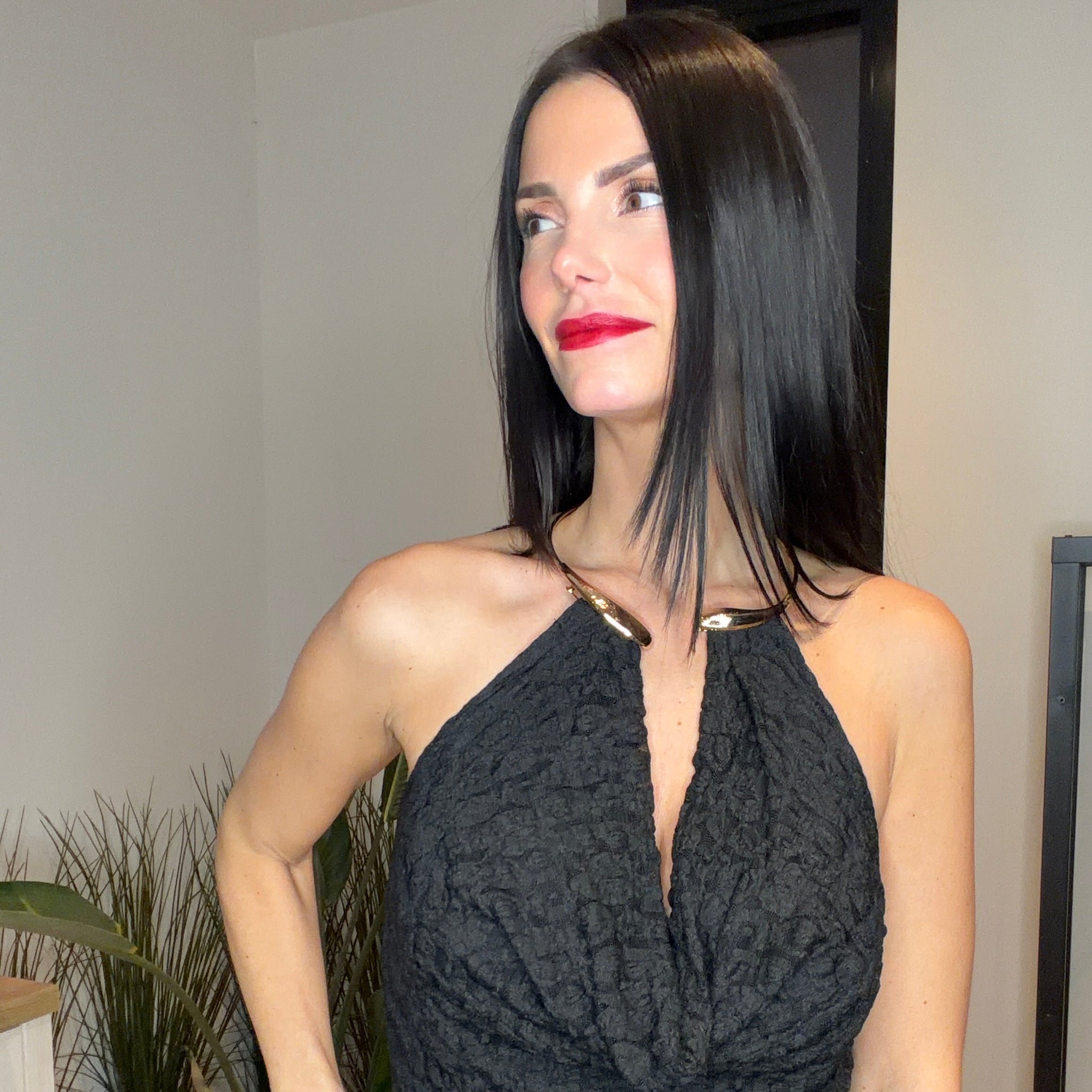 Body en dentelle taille unique 34-42 dos nus encolure américaine avec collier bijoux intégré s...