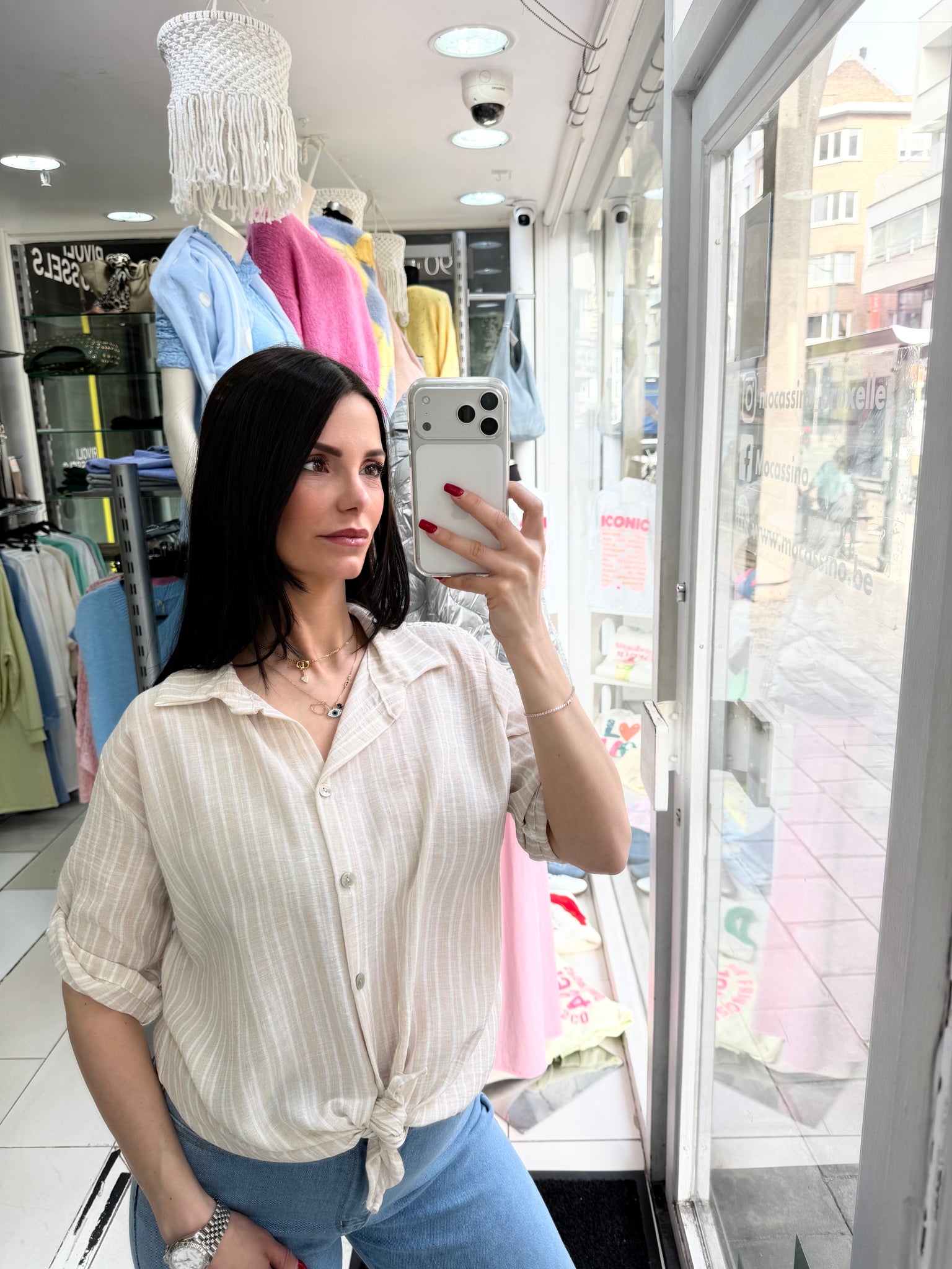 - Bas à nouer à l’avant (peut aussi se porter sans nœud)