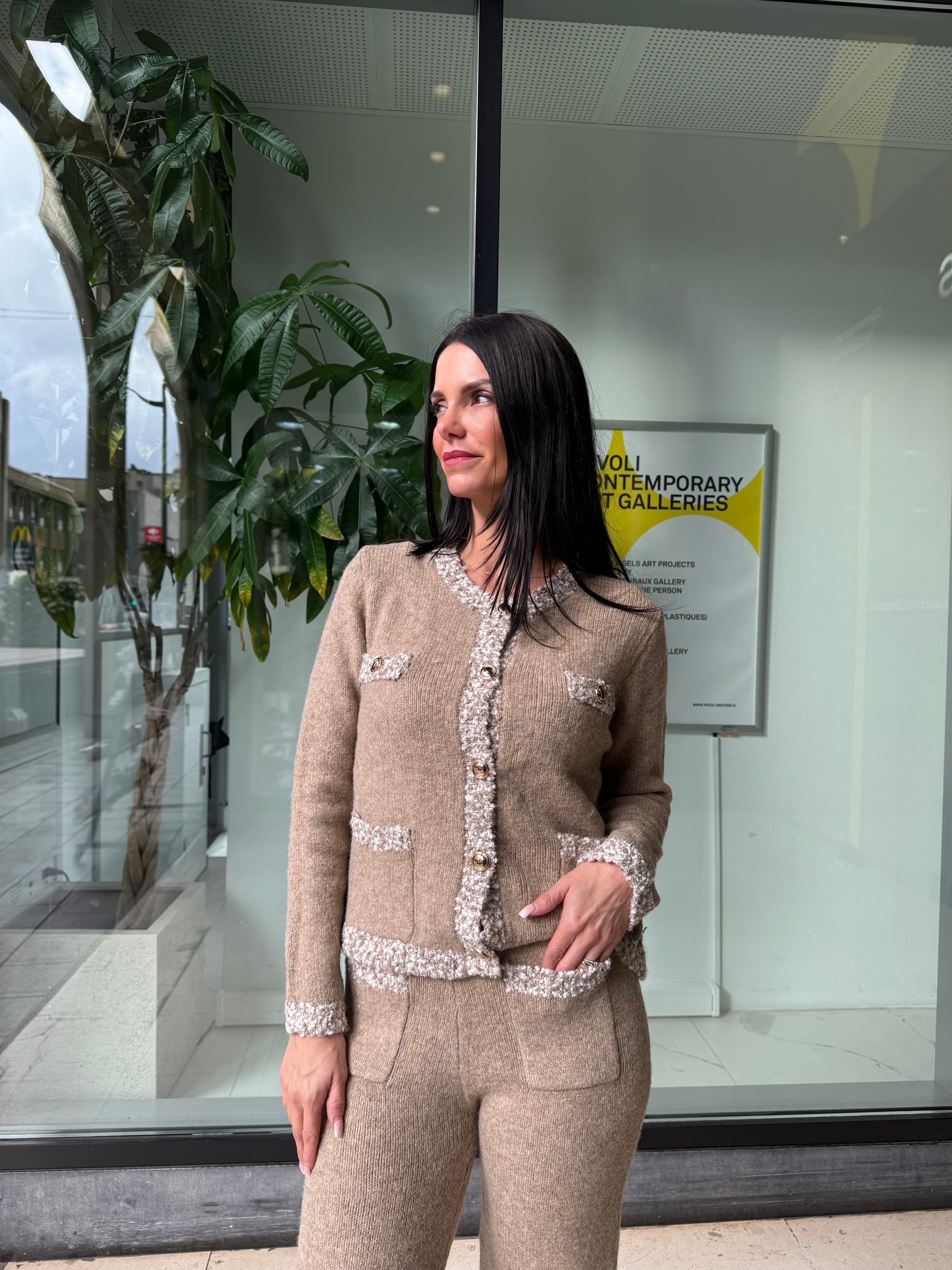 - Veste structurée avec finitions contrastées effet tweed sur les poches, les poignets et le bas