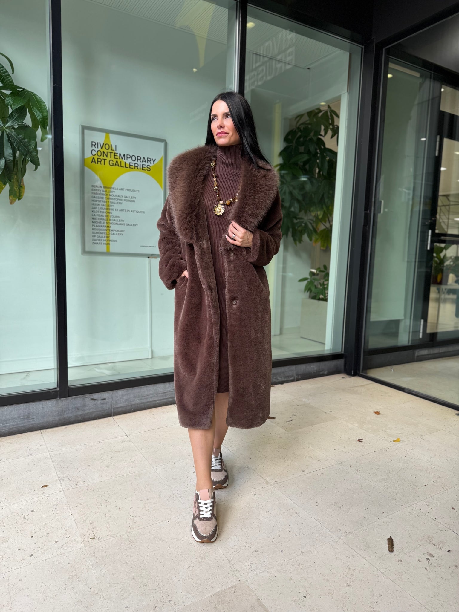 Long manteau mi-mollet, coupe droite et élégante Col oversize effet châle en fausse fourrure é...