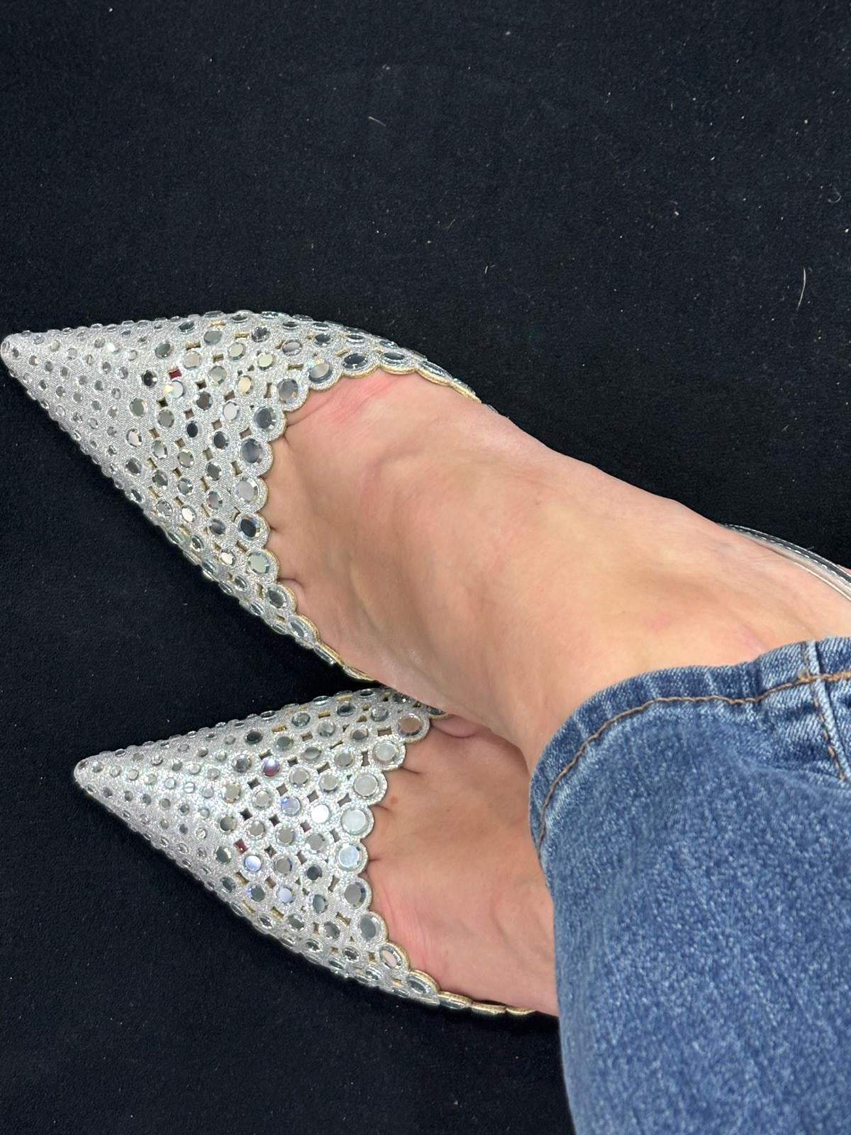 Escarpins argentés à bout pointu – design ajouré scintillant